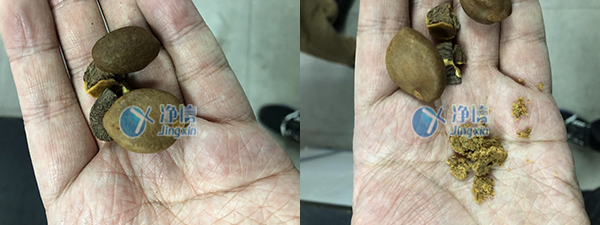 上圖為研磨效果,已經(jīng)完全研磨完成。效果非常好,刀片材料選擇的是鈦合金材料,避免有金屬污染,山茶籽是高油的樣本,粉碎機(jī)和手工研磨達(dá)不到這個效果,而且效率很低,經(jīng)過多次測試和對比所以老師選用凈信研磨儀代替破碎機(jī)和人工處理。效率高,效果好。完美解決了老師的研磨問題。