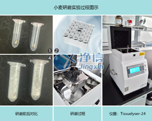 小麥樣品中提取DNA,之前采用研缽手工研磨的方法,在研缽內(nèi)倒入液氮,在凍干狀態(tài)下快速研磨,研磨過(guò)程中葉脈不易研磨,整體研磨樣品不充分,影響實(shí)驗(yàn)效果,因此選擇上海凈信多樣品組織研磨儀。