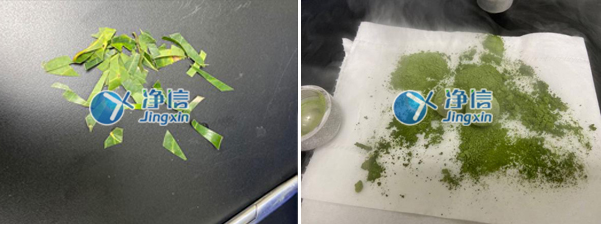 將樟樹(shù)葉片剪小段后放入若干ML研磨罐中,加入特定規(guī)格的研磨介質(zhì),然后把研磨罐放入液氮眾泡制幾分鐘,泡制至超低溫后放進(jìn)上海凈信多樣品研磨儀內(nèi),設(shè)置好研磨儀工作時(shí)間和頻率,啟動(dòng)設(shè)備。