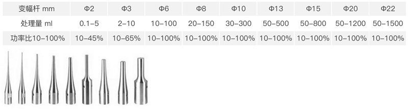 3.超聲探頭采用美標(biāo)TC4材質(zhì)的高純鈦合金,探頭形狀:錐形、鞭節(jié)形,發(fā)波形式:垂直超聲。