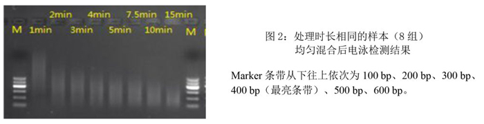 3.相同處理時長的樣本混合后,瓊脂糖凝膠電泳檢測結(jié)果: