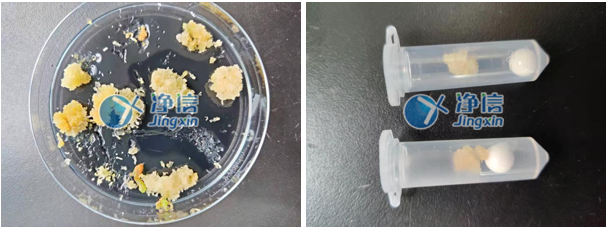 上圖為1分鐘的研磨效果,已經(jīng)完全研磨完成。效果非常好,老師要求愈傷研磨一定要凍液氮,否則rna可能降解,所以人工研磨特別不方便,經(jīng)過(guò)多次了解和對(duì)比所以老師們選用凈信研磨儀代替人工處理。效率高,效果好。解決了老師的研磨問(wèn)題。