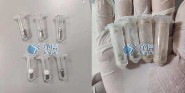 上圖為1分鐘的研磨效果,已經(jīng)完全研磨完成,達到老師預(yù)期效果。研磨管一次可以做24個樣品,經(jīng)過全自動冷凍組織研磨儀的研磨處理后,蘋果樹枝條能夠快速被研磨成細小的顆粒,從而方便后續(xù)的分析。同時,該研磨儀的運行過程中不會引入外界污染,從而保證了樣品的純度。經(jīng)過多次了解和對比所以老師們選用凈信研磨儀代替人工處理。效率高,效果好。成功的解決了老師的研磨問題。