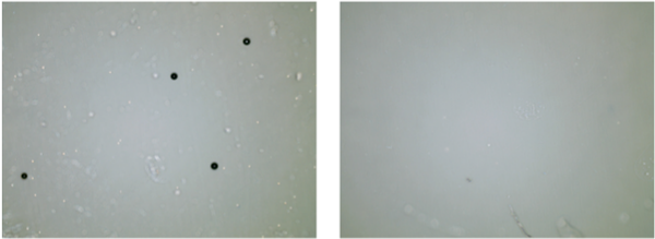 顯微鏡觀察細胞幾乎全部破碎(左圖處理前,右圖處理后)