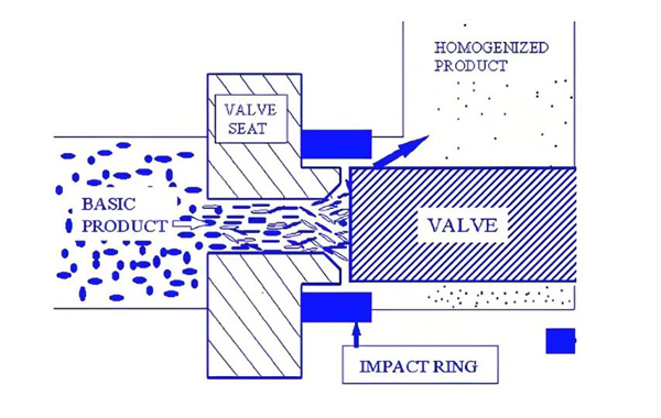 ① 剪切作用,均質(zhì)閥座與閥芯間的縫隙很小,對(duì)物料顆粒產(chǎn)生剪切