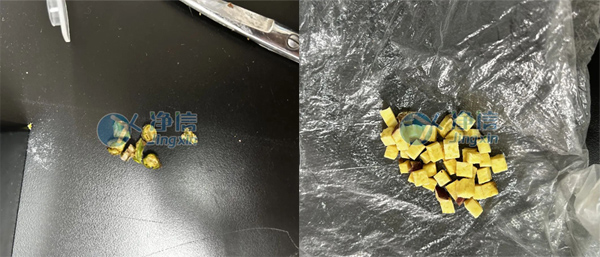 左為研磨后;右為研磨后加水混勻后