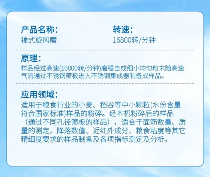 只有打好樣品前處理這一 “地基”,才能在食品安全檢測(cè)中交出真實(shí)、精準(zhǔn)的答卷 —— 錘式旋風(fēng)磨用機(jī)械研磨的精密性,為每一份檢測(cè)數(shù)據(jù)筑牢可信度根基,讓 “大國(guó)糧倉(cāng)” 的質(zhì)檢防線從樣本研磨環(huán)節(jié)就充滿(mǎn)技術(shù)底氣,最終以可靠的檢測(cè)報(bào)告守護(hù)舌尖上的安全,為嚴(yán)苛的食品安全標(biāo)準(zhǔn)落地提供無(wú)可辯駁的技術(shù)支撐。