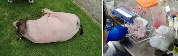 3、香豬解剖后,取出肝臟、卵巢、子宮、胰腺放入有類器官緩沖液的培養(yǎng)皿中,放在冰上。