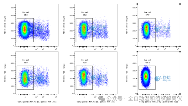 實(shí)驗(yàn)結(jié)果顯示,制備的脂肪單細(xì)胞懸液活率接近100%(下方流式結(jié)果圖),優(yōu)于常規(guī)制備方法的活率水平。高活率細(xì)胞不僅能確保下游實(shí)驗(yàn)的準(zhǔn)確性,更能減少樣品浪費(fèi),降低科研成本。