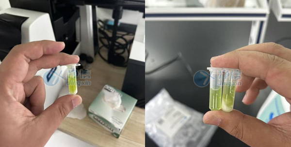 實驗?zāi)康模?/strong>本次實驗對象為微藻,后續(xù)會做到核酸蛋白提取。作為微生物,且此類微藻細胞壁非常厚,研磨起來也是一個難點,要求研磨徹底,以便提高蛋白及核酸的濃度,涉及到蛋白、RNA提取還需要低溫研磨,之前用超聲破碎長時間也無法破碎,因為樣品本身是液體,所以溫度也不能太低,否則凍住液體無法研磨,經(jīng)過比較推薦,最終客戶選擇上海凈信全自動樣品快速組織研磨儀處理樣品。