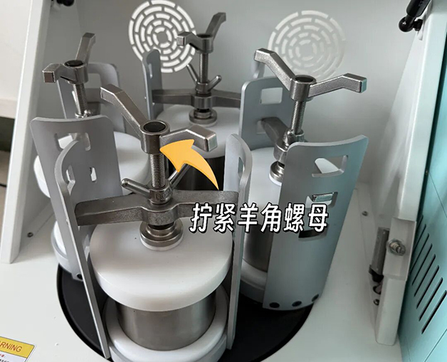 1、研磨過(guò)程研磨罐對(duì)稱放置,擰緊羊角螺母,注意安全。