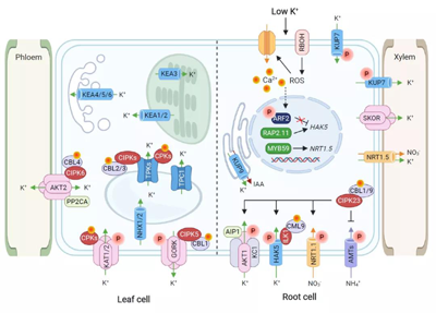 近日中國農(nóng)業(yè)大學(xué)武維華院士團隊題為"Potassium and phosphorus transport and signaling in plants"的綜述論文。該論文以擬南芥和水稻為例,系統(tǒng)歸納了植物、作物吸收、運輸鉀和磷的分子調(diào)控機制,以及植物/作物感受和應(yīng)答低鉀、低磷逆境脅迫的信號轉(zhuǎn)導(dǎo)機制。此外,論文還討論了氮、磷、鉀養(yǎng)分之間的互作關(guān)系,及其協(xié)同吸收、運輸?shù)姆肿訖C理。