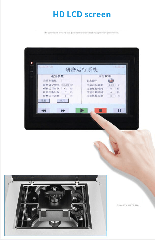 3. Easy to operate: you can directly select the grinding time and grinding frequency to change the grinding conditions