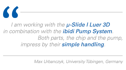 Several three-dimensional cell culture experiments can be performed using the μ-Slide I Luer 3D. For example, single cells or cell clusters can be seeded in the hydrogel matrix. Optionally, defined shear stress can be applied to a cell monolayer on top.