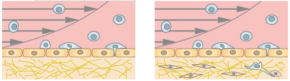 Co-culture of an endothelial cell layer and suspension cells for rolling and adhesion assays (left),