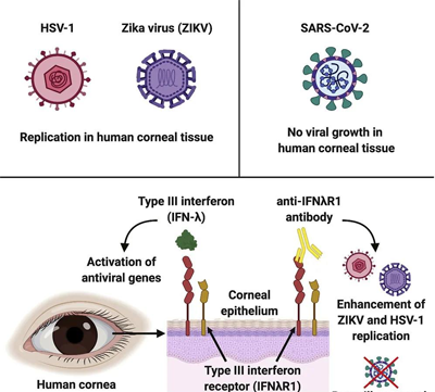 美國《細(xì)胞報(bào)告》雜志近期發(fā)表的一項(xiàng)研究表明,人類眼角膜對寨卡病毒和單純皰疹病毒1型易感,但似乎對新冠病毒有抵抗力。在此項(xiàng)研究中,專家們使用了25份角膜組織進(jìn)行實(shí)驗(yàn),其中既包括人類角膜組織,也有實(shí)驗(yàn)鼠供體的角膜組織,并將它們暴露于三種不同的病毒中,分別是:ZIKV、HSV-1和新冠病毒,結(jié)果發(fā)現(xiàn)新冠病毒沒有在角膜中繁殖。至于人角膜和結(jié)膜如何能夠抵抗新冠病毒,該研究團(tuán)隊(duì)還不能完全確定。
