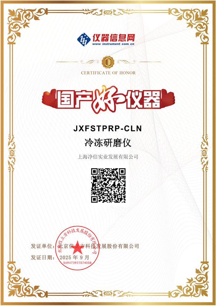 在國產(chǎn)科學(xué)儀器崛起的浪潮中,上海凈信實業(yè)發(fā)展有限公司的兩款“明星產(chǎn)品” ——冷凍研磨儀 JXFSTPRP-CLN與冷凍耐酸堿真空離心濃縮儀 JX-ZLN-EL,憑借優(yōu)異的性能、可靠的品質(zhì),成功入選 “國產(chǎn)好儀器” 榜單。這不僅是對上海凈信技術(shù)實力的高度認(rèn)可,更是國產(chǎn)儀器在科研領(lǐng)域 “硬實力” 的生動體現(xiàn)。