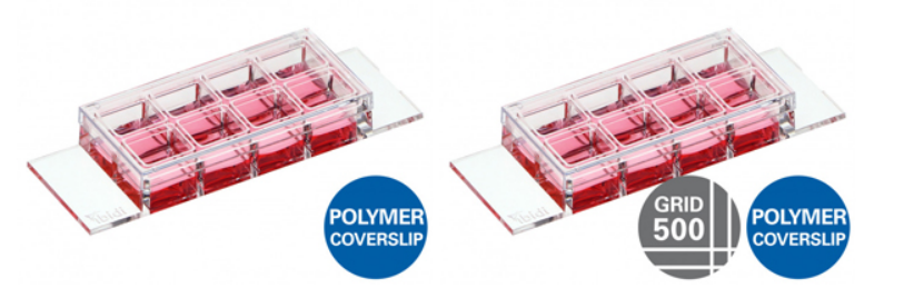 μ-Slide 8孔獨(dú)立高壁腔室500um格子底載玻片,ibiTreat底部處理