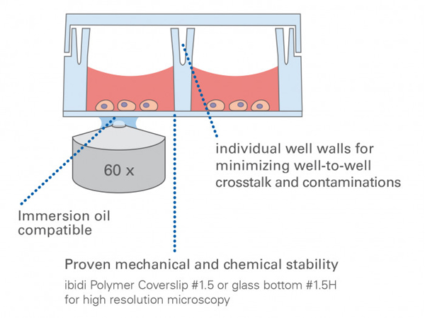 μ-Slide 8孔獨(dú)立高壁腔室載玻片,ibiTreat底部處理