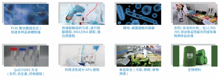 應(yīng)用領(lǐng)域: | 組織均質(zhì)、研磨、細胞破碎、勻漿、材料分散、制備、樣品混勻、振蕩 |